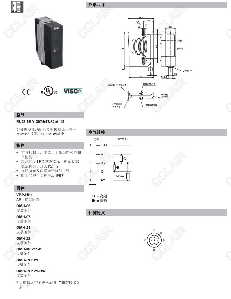 RL28-55-V-3974/47/82b/112,反射板型傳感器