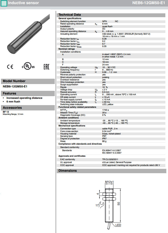 NEB6-12GM50-E0,NEB6-12GM50-E1,NEB6-12GM50-E2感應式傳感器