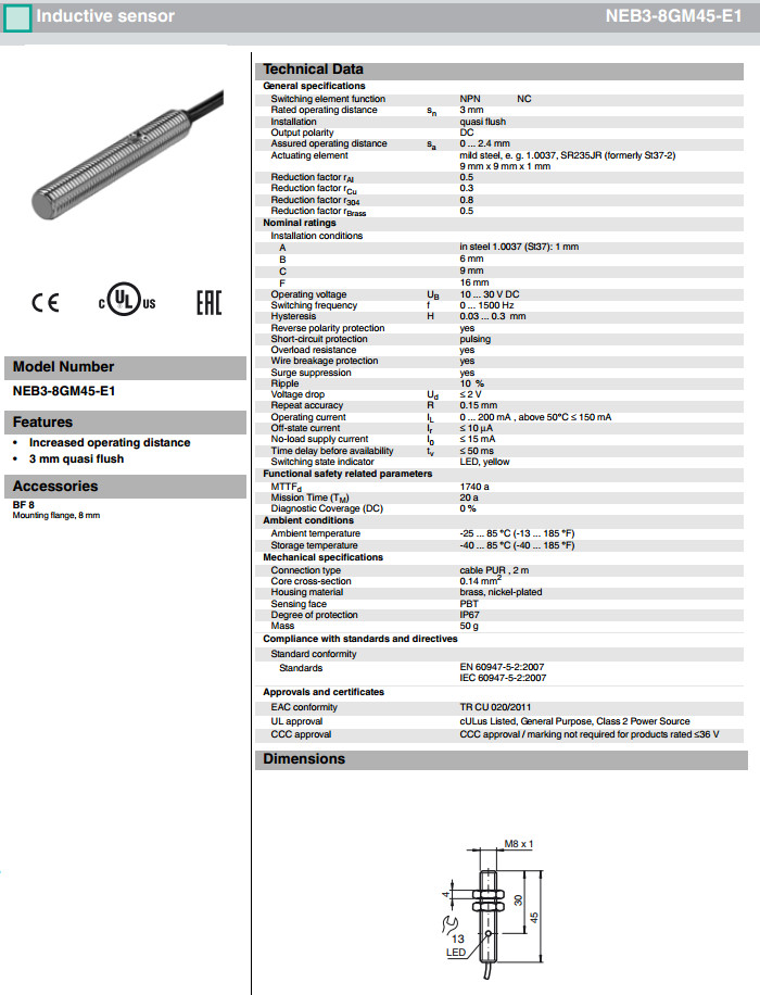 NEB3-8GM45-E0,NEB3-8GM45-E1,NEB3-8GM45-E2感應式傳感器