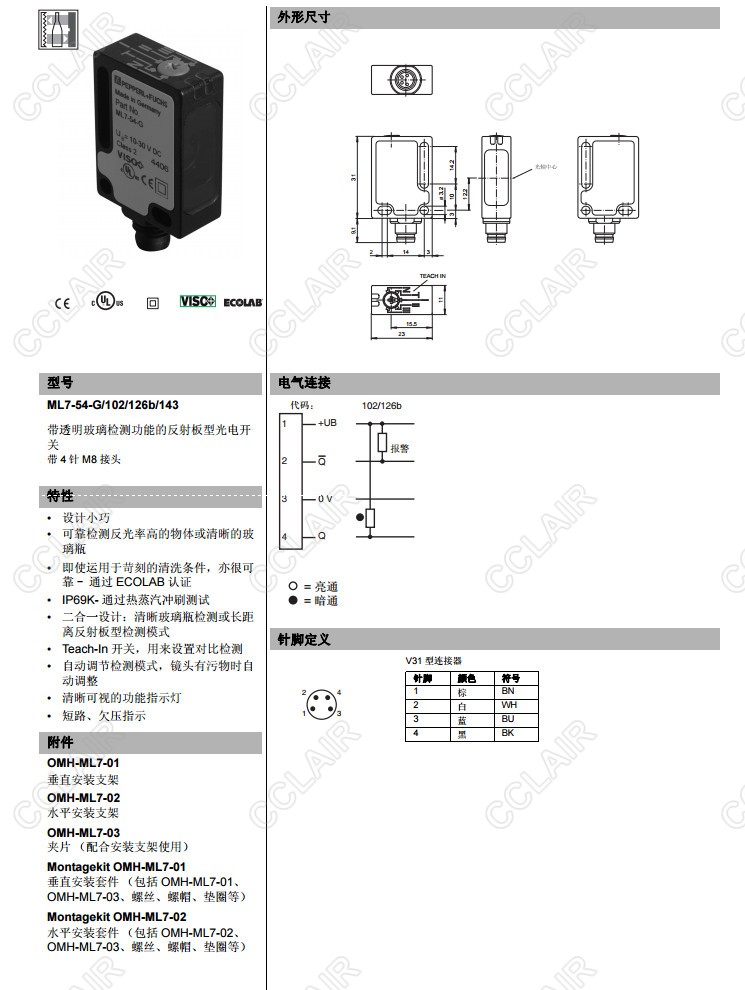 ML7-54-G/102/126b/143,反射板型傳感器