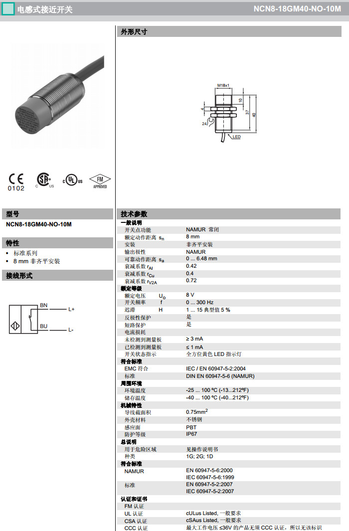 NCN8-18GM40-N0,NCN8-18GM40-N0-10M,NCN8-18GM40-N0-5M感應式傳感器