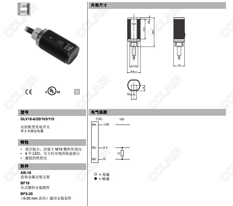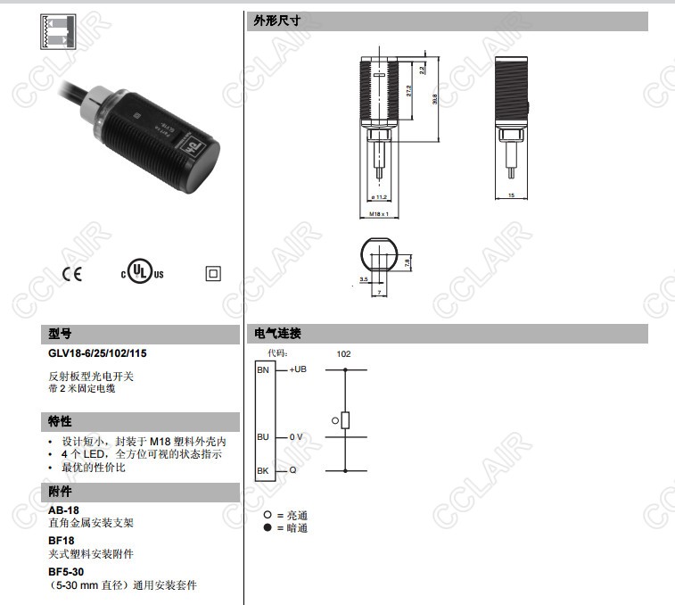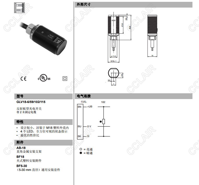 GLV18-6/115/120,GLV18-6/25/102/115,GLV18-6/25/103/115,GLV18-6/59/102/115,反射板型傳感器