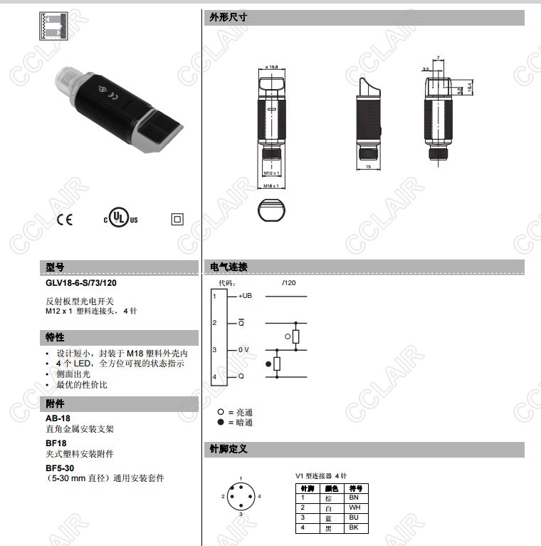 GLV18-6-S/73/120GLV18-6-S/73/120,反射板型傳感器