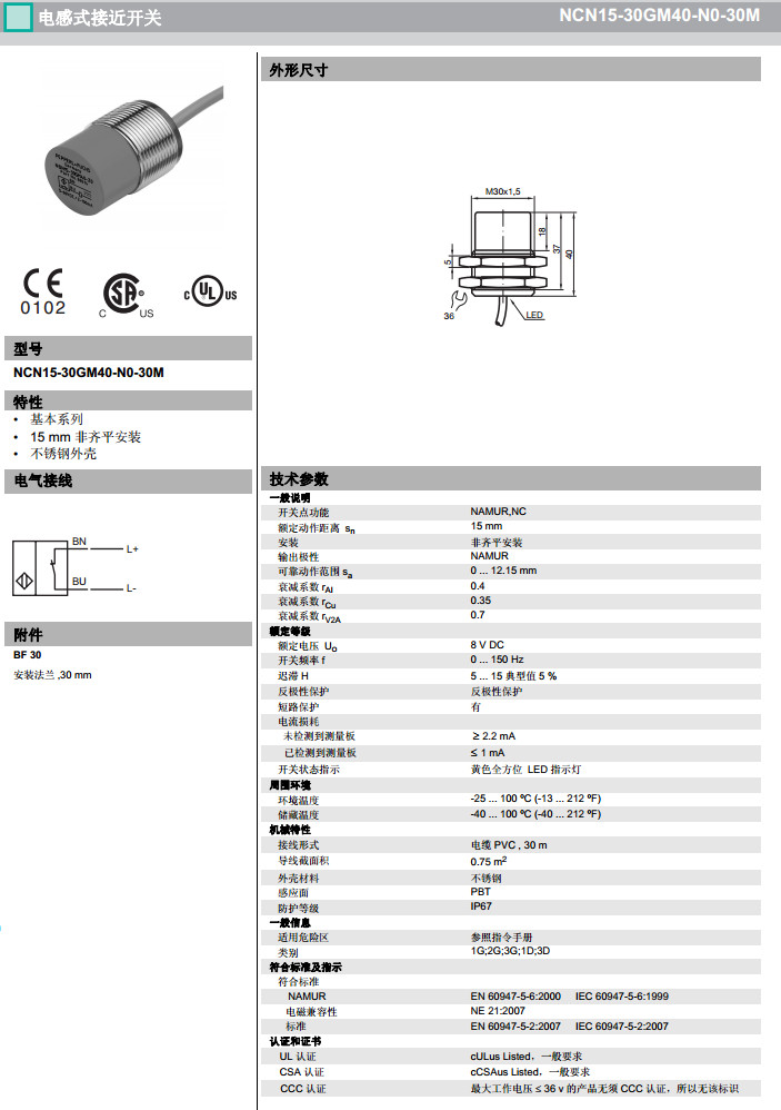 NCN15-30GM40-N0,NCN15-30GM40-N0-10M,NCN15-30GM40-N0-20M,感應(yīng)式傳感器