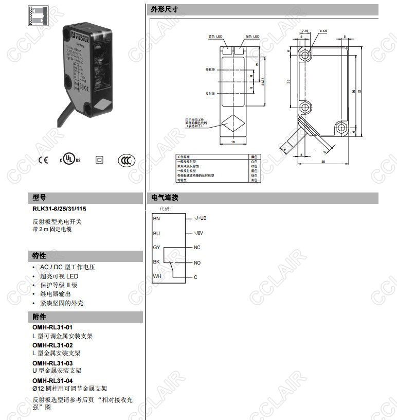 RLK31-6/25/31/115,反射板型光電開關(guān)