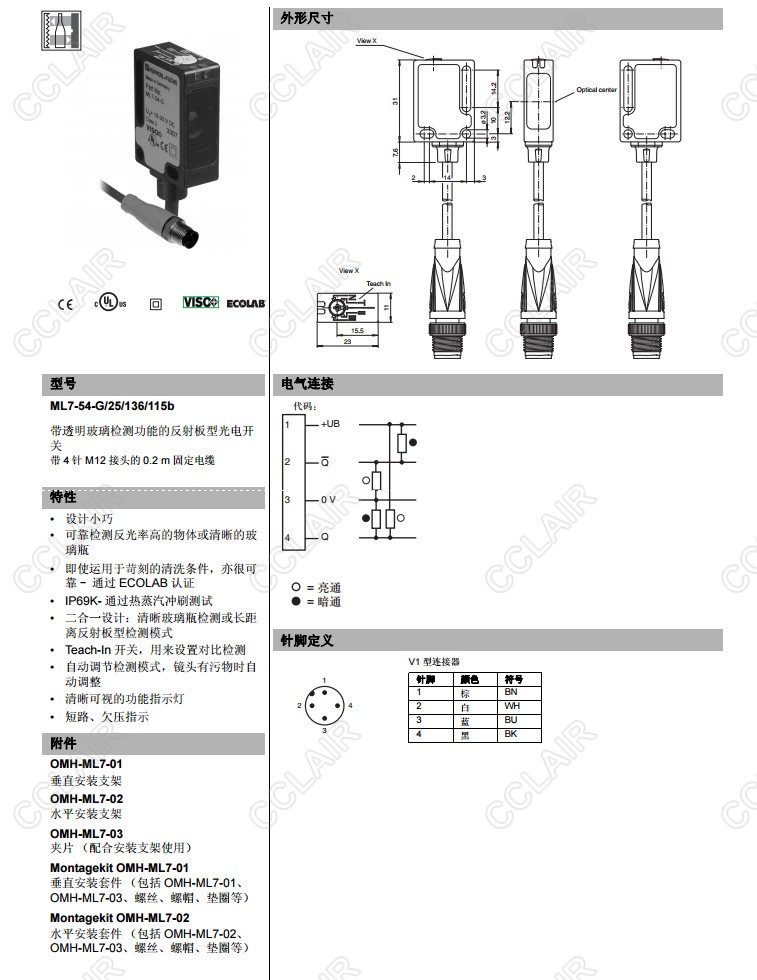 ML7-54-G/25/136/115b,反射板型傳感器