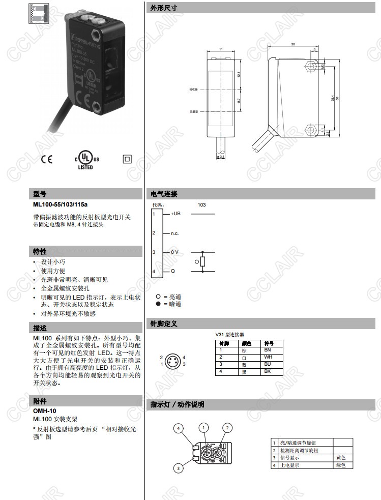 ML100-55/103/115a,反射板型光電開關