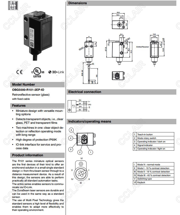 OBG5000-R101-2EP-IO,反射板型傳感器
