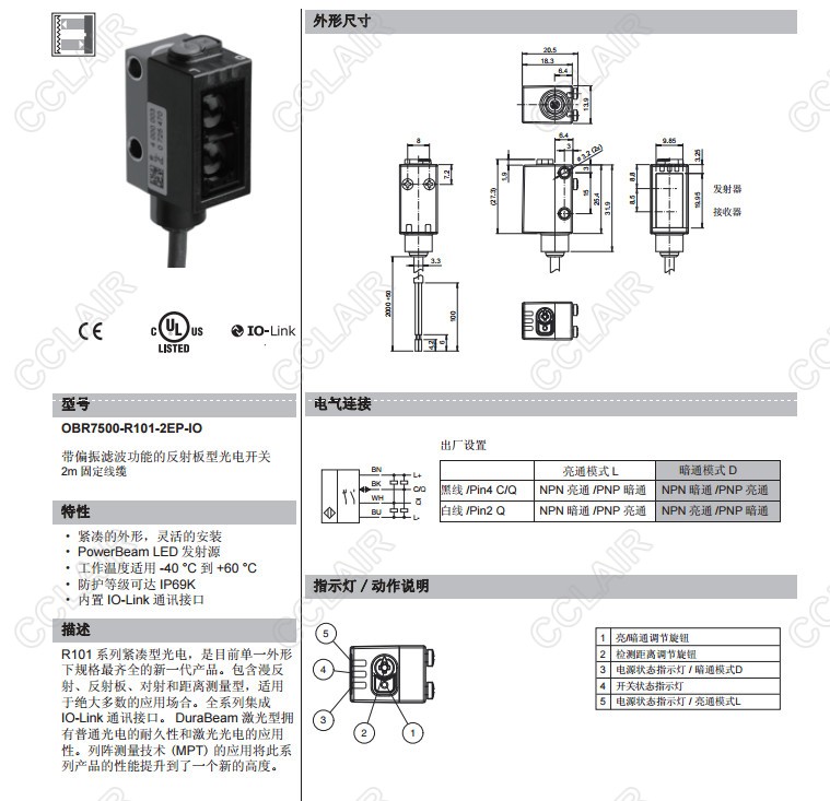 OBR7500-R101-2EP-IO,反射板型傳感器