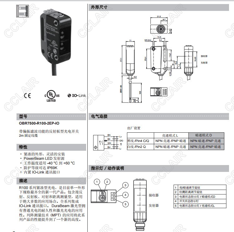 OBR7500-R100-2EP-IO,反射板型傳感器
