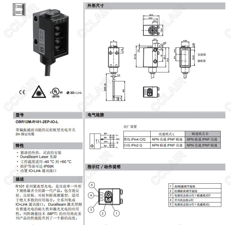 OBR12M-R101-2EP-IO-L,反射板型傳感器