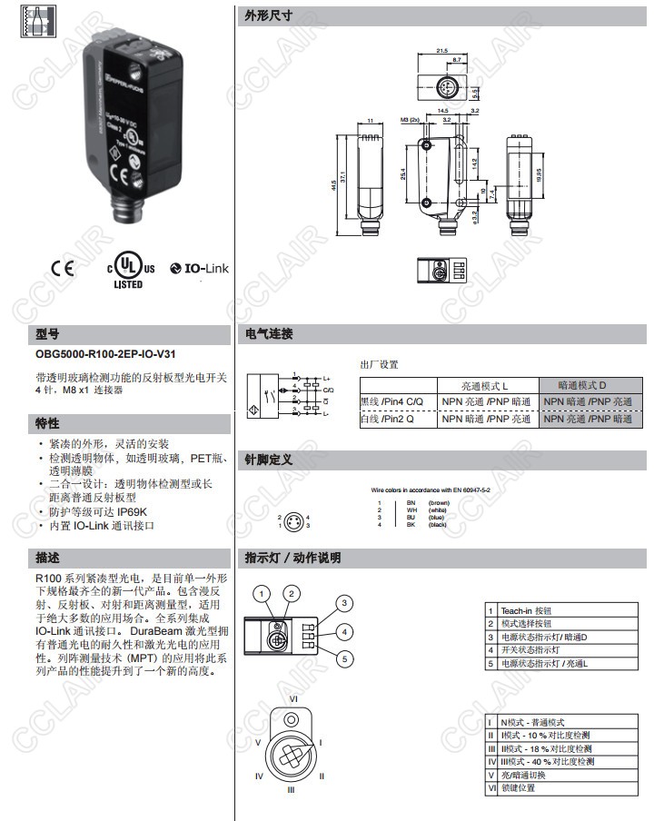 OBG5000-R100-2EP-IO-V31,反射板型傳感器
