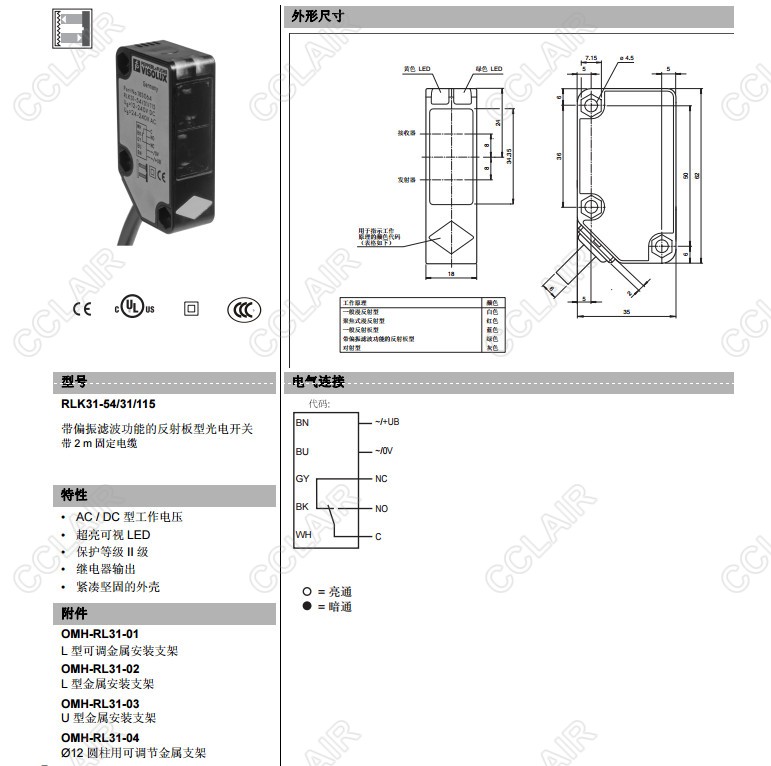 RLK31-54/31/115,RLK31-6/31/115,反射板型傳感器