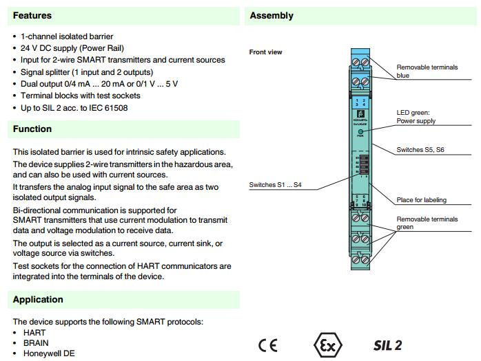 KCD2-STC-Ex1.2O.DE,模擬量輸入安全柵