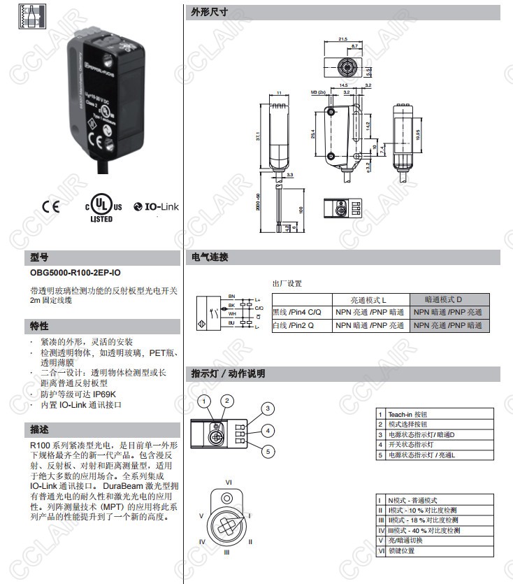 OBG5000-R100-2EP-IO,反射板型傳感器