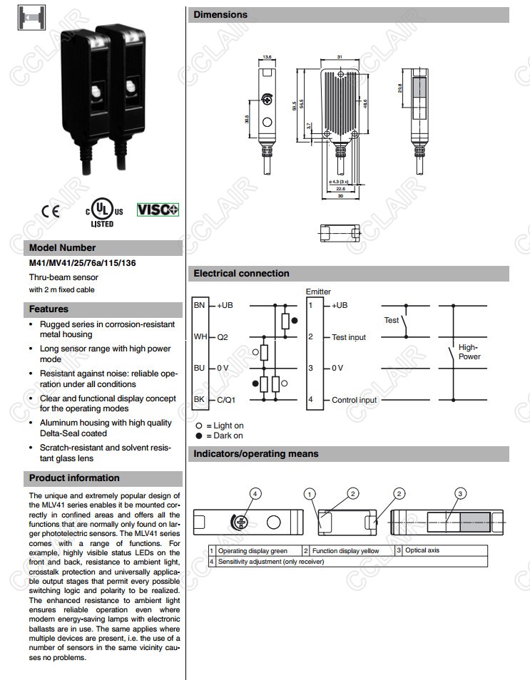 M41/MV41/25/70/76a/136,M41/MV41/25/76a/115/136,對(duì)射型光電開(kāi)關(guān)