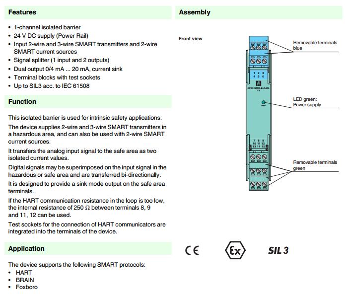KFD2-STC4-Ex1.2O-Y1,模擬量輸入安全柵