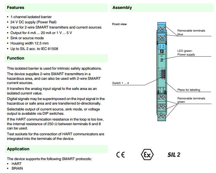 KCD2-STC-Ex1,模擬量輸入安全柵
