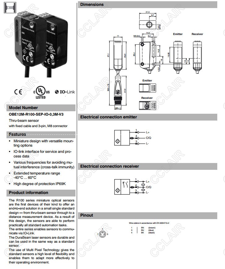 OBE12M-R100-S2EP-IO-0,3M-V1,OBE12M-R100-S2EP-IO-0,3M-V31,OBE12M-R100-SEP-IO-0,3M-V3,對射型傳感器 |