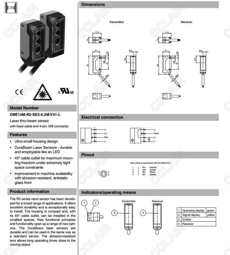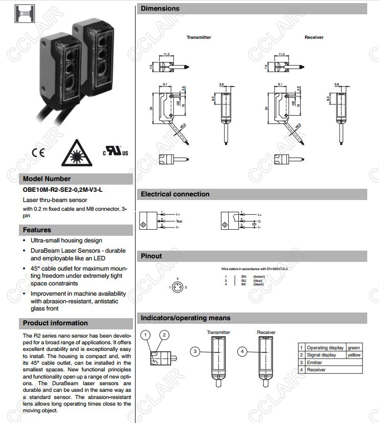 OBE10M-R2-SE2-0,2M-V3-L,OBE10M-R2-SE2-0,2M-V31-L,對射型傳感器