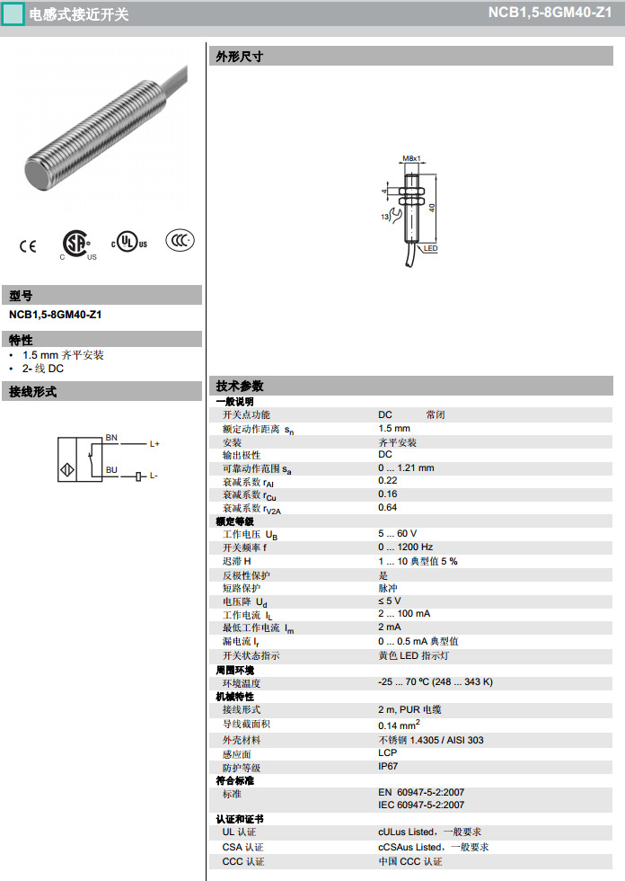 NCB1,5-8GM40-Z0,NCB1,5-8GM40-Z1感應(yīng)式傳感器