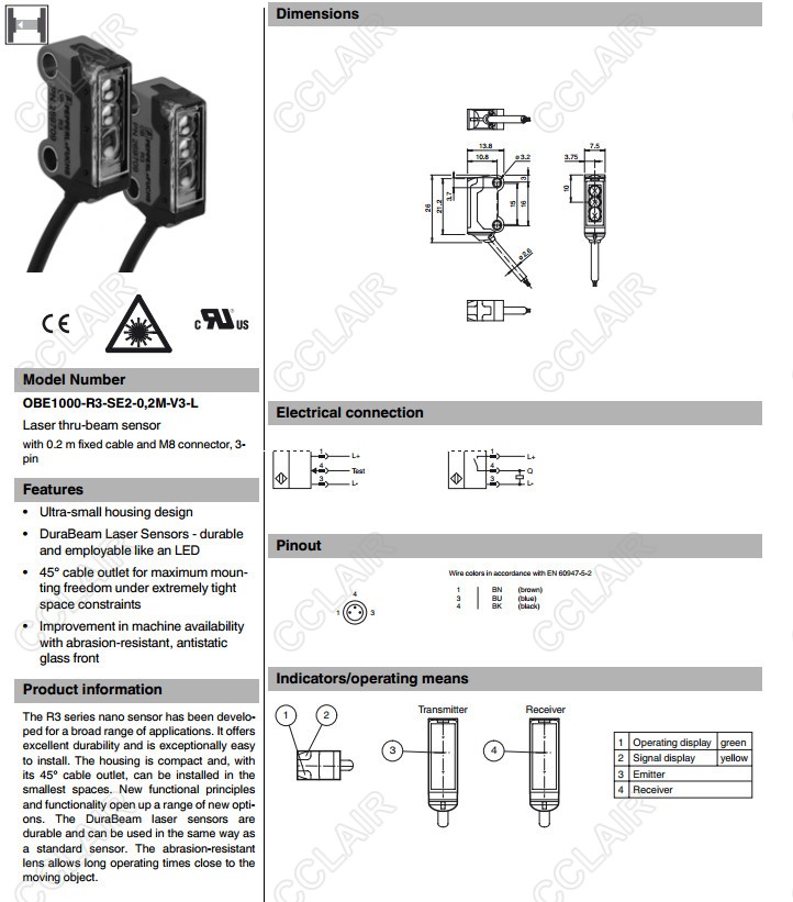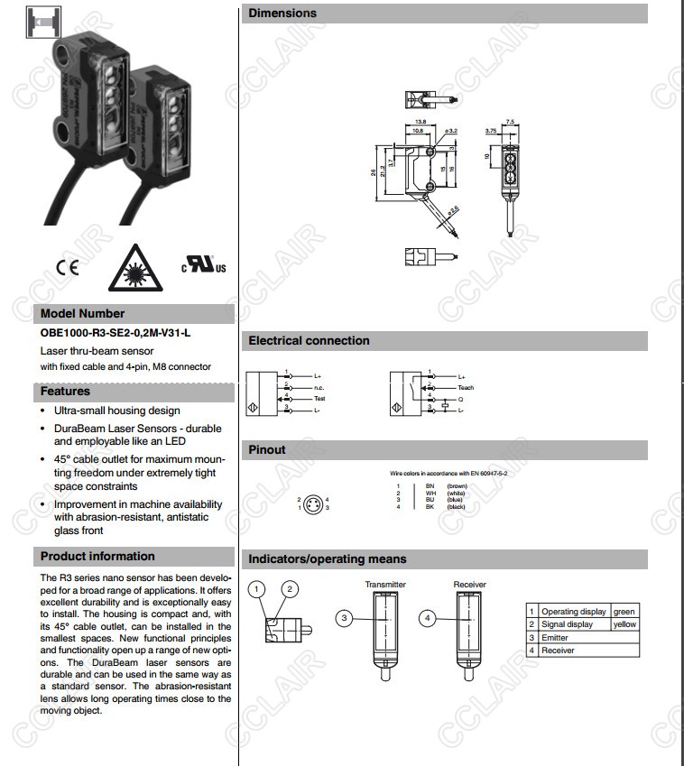 OBE1000-R3-SE2-0,2M-V3-L,OBE1000-R3-SE2-0,2M-V31-L,對射型傳感器