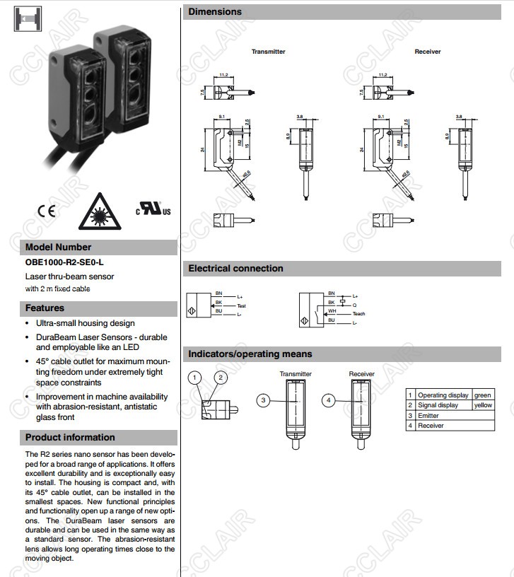OBE1000-R2-SE0-L,OBE1000-R2-SE2-L,激光對射傳感器