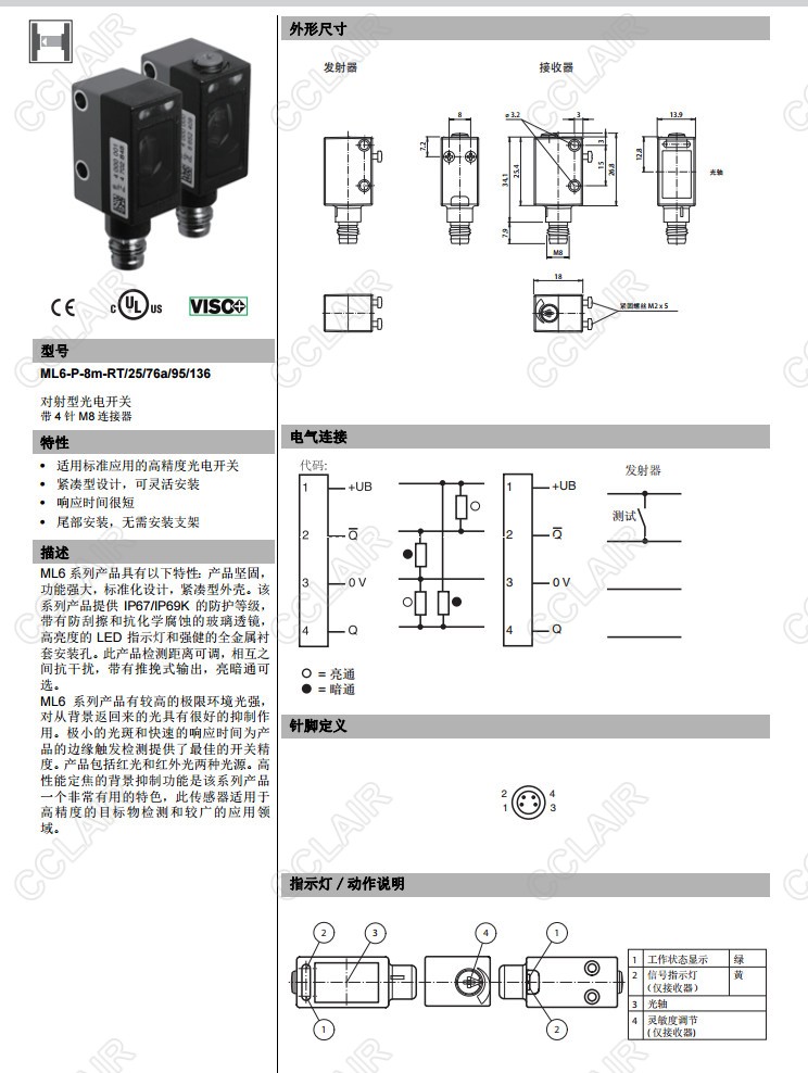 ML6-P-8m-RT/25/76a/95/136,對射型傳感器