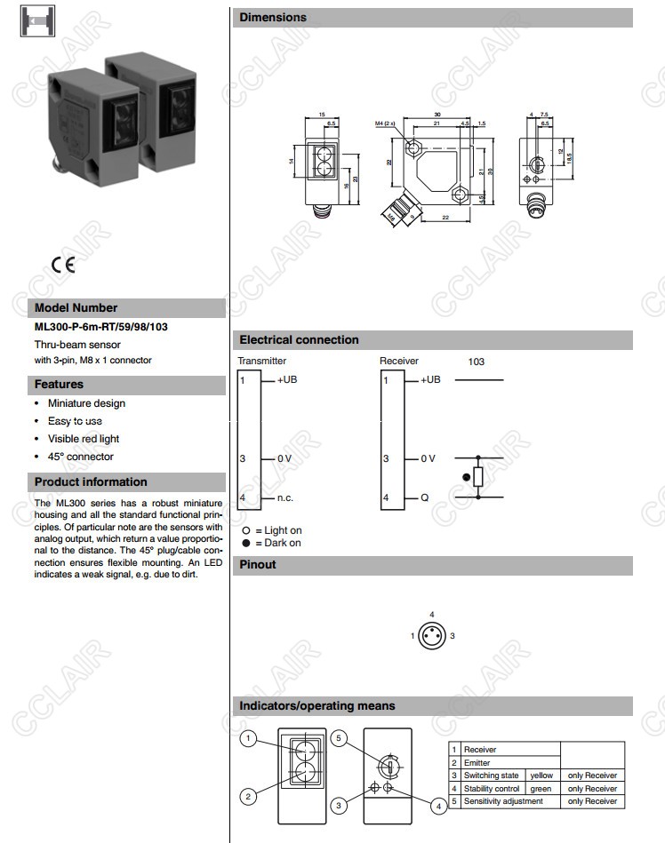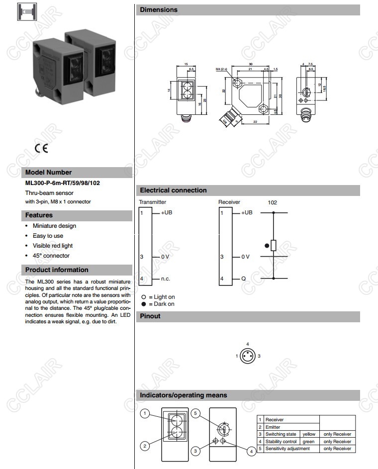ML300-P-6m-RT/59/98/102,ML300-P-6m-RT/59/98/103,對射型傳感器