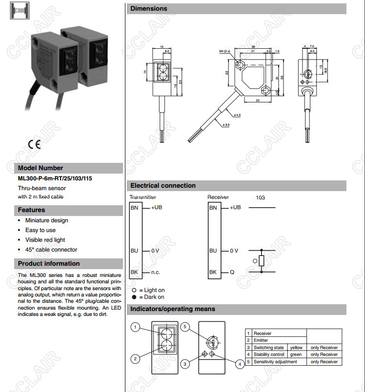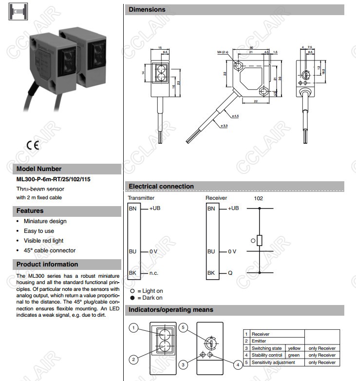 ML300-P-6m-RT/25/102/115,ML300-P-6m-RT/25/103/115,對(duì)射型傳感器