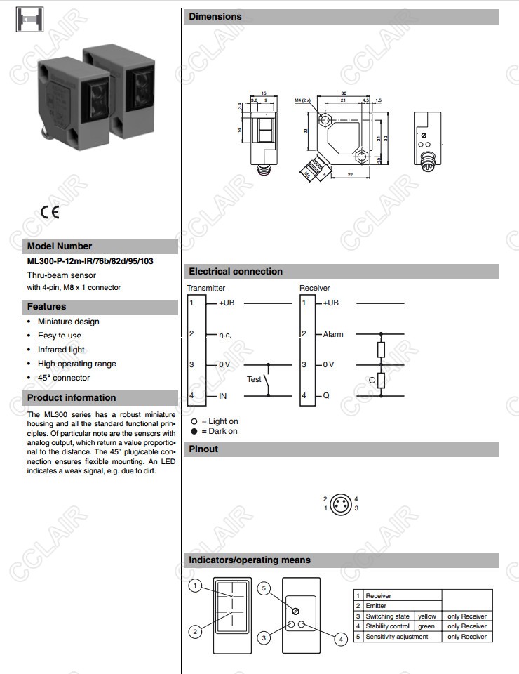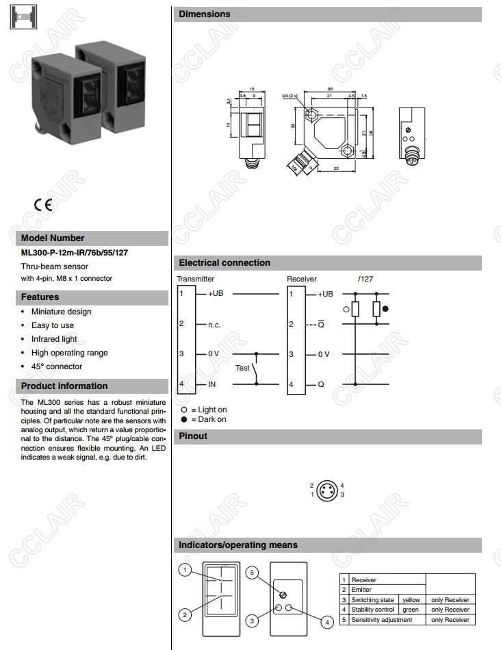 ML300-P-12m-IR/76b/82d/95/103,ML300-P-12m-IR/76b/95/120,ML300-P-12m-IR/76b/95/127,對射型傳感器