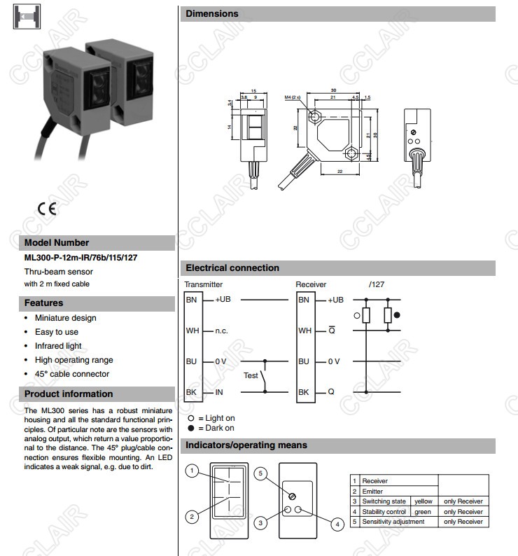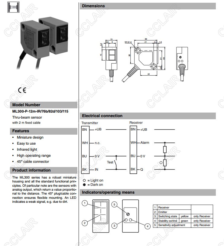 300-P-12m-IR/76b/115/127,ML300-P-12m-IR/76b/82d/103/115,對射型傳感器