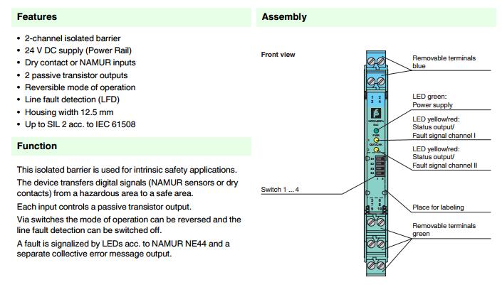KCD2-SOT-Ex2,開關(guān)量輸入安全柵