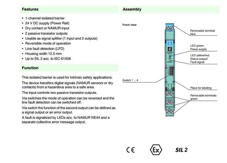 KCD2-SOT-Ex1.LB,開(kāi)關(guān)量輸入安全柵