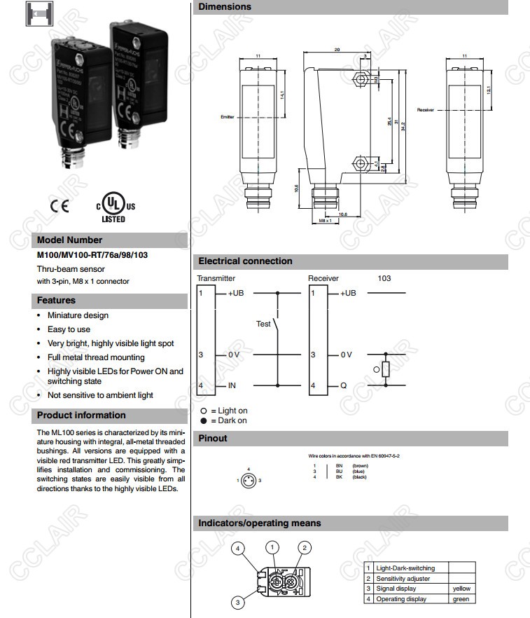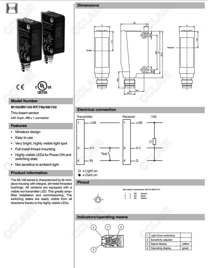 M100/MV100-RT/76a/98/103,M100/MV100-RT/76b/98/102,對(duì)射型傳感器