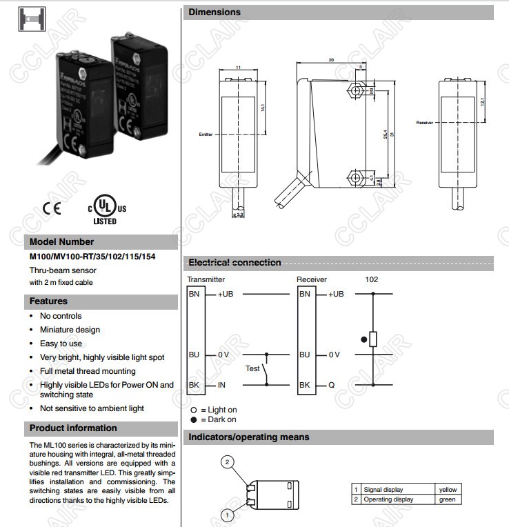 M100/MV100-RT/35/102/115/154,M100/MV100-RT/35/103/115/154,對(duì)射型傳感器