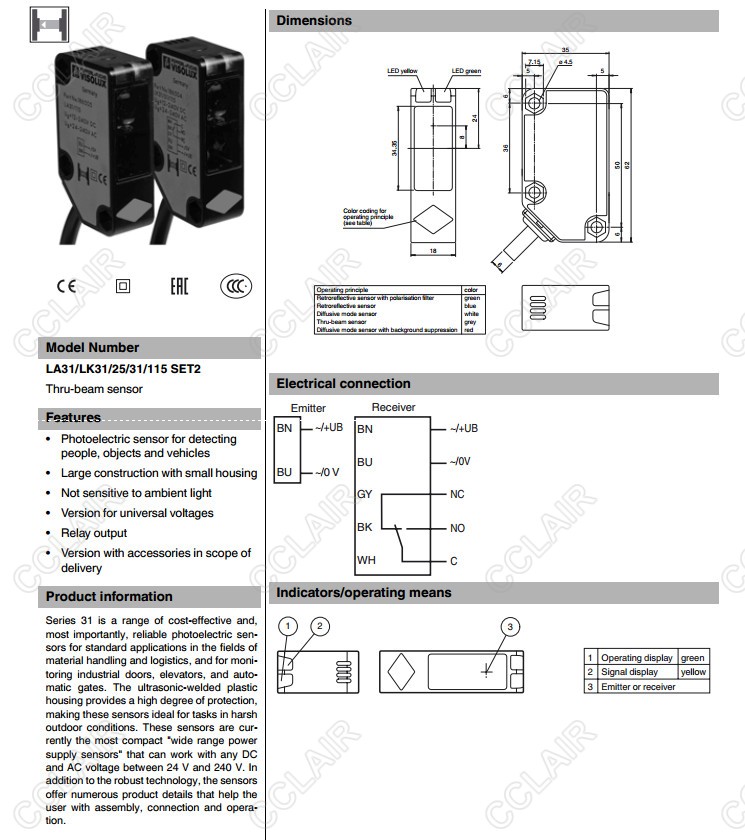 LA31/LK31/16/25/31/115,LA31/LK31/25/31/115/SET,LA31/LK31/25/31/115/SET2,對射型傳感器