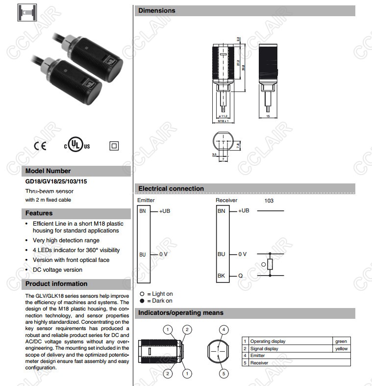 GD18/GV18/25/103/115,對(duì)射型傳感器