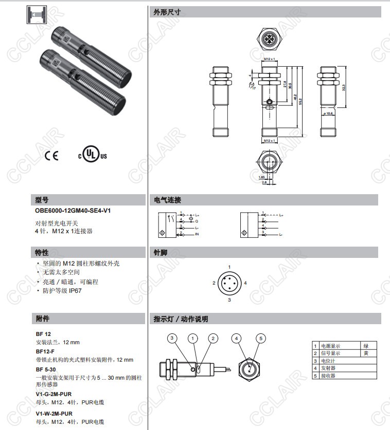 OBE6000-12GM40-SE4-V1,對射型傳感器