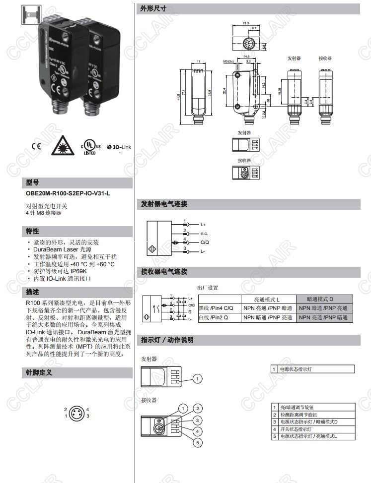 OBE20M-R100-S2EP-IO-V31-L,對(duì)射型傳感器