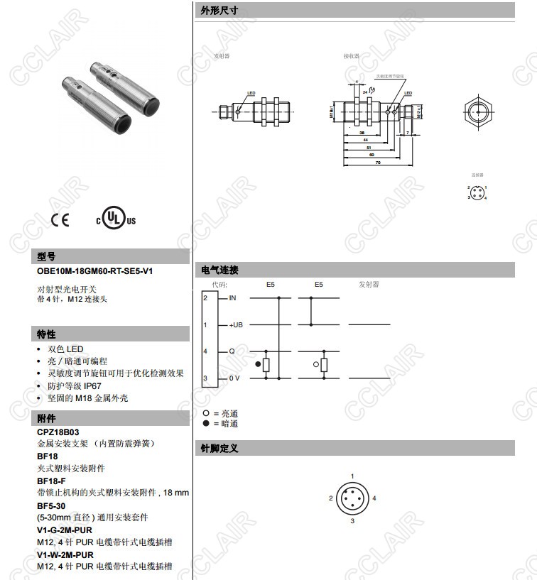 OBE10M-18GM60-RT-SE5-V1,對(duì)射型傳感器