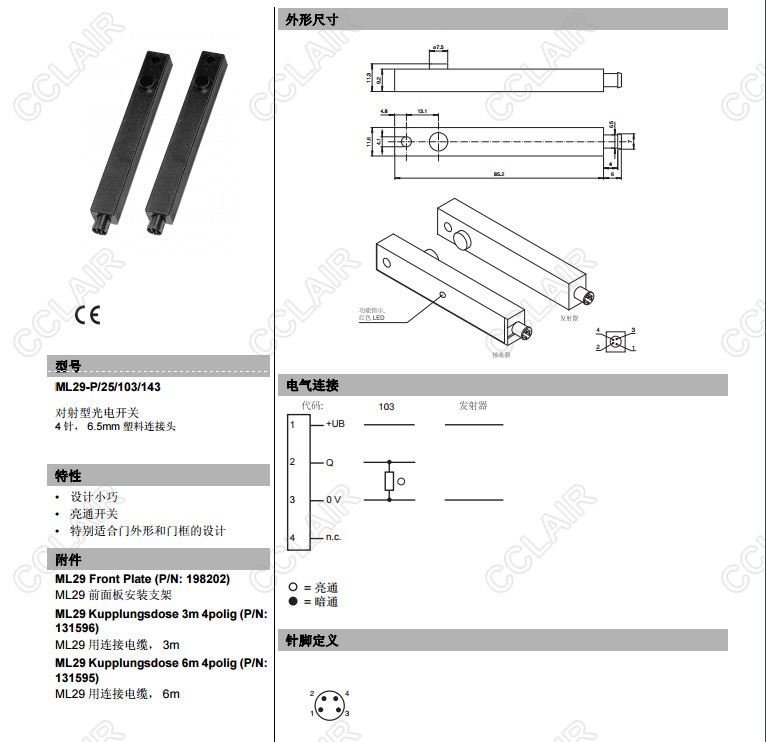 ML29-2P/25/102/143,ML29-2P/25/103/143,對(duì)射型傳感器