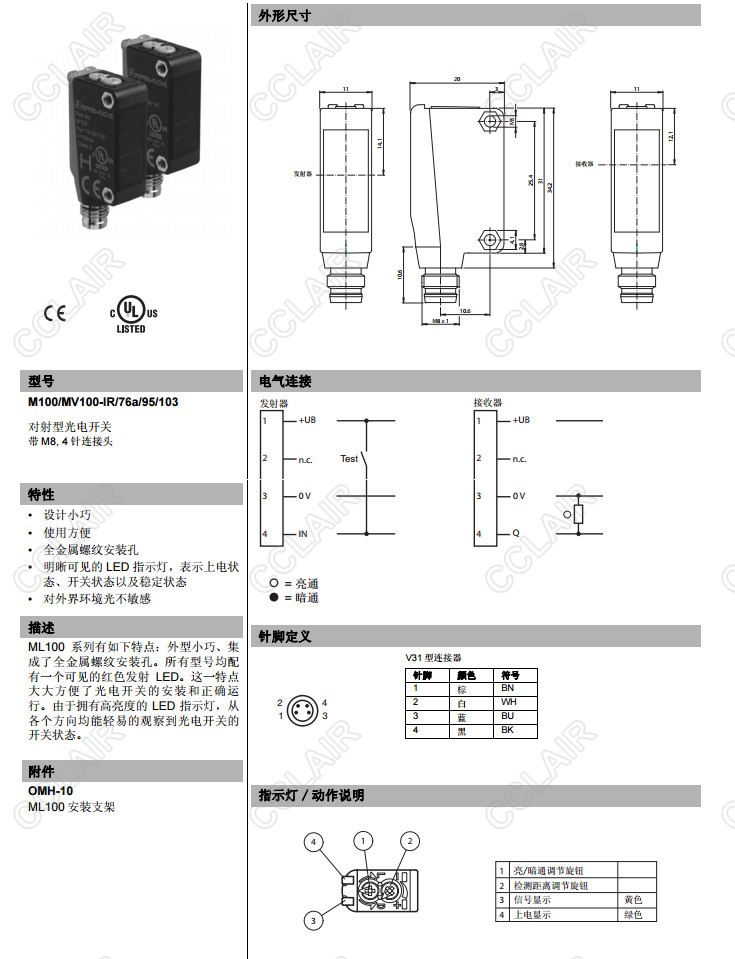 M100/MV100-IR/76a/95/103,對(duì)射型傳感器