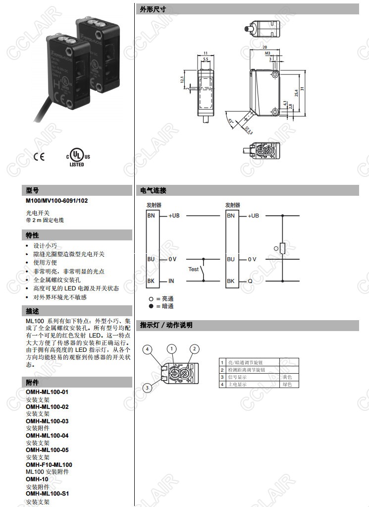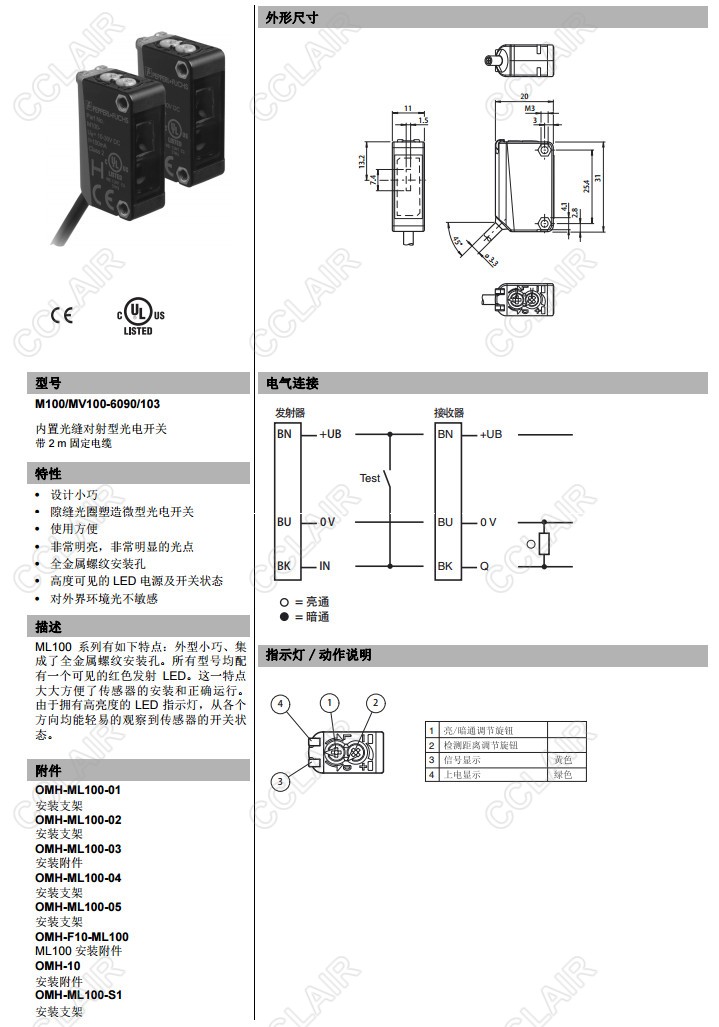 M100/MV100-6090/103,M100/MV100-6091/102,對(duì)射型傳感器