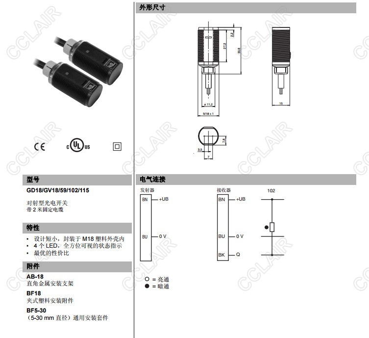 GD18/GV18/59/102/115,對(duì)射型傳感器