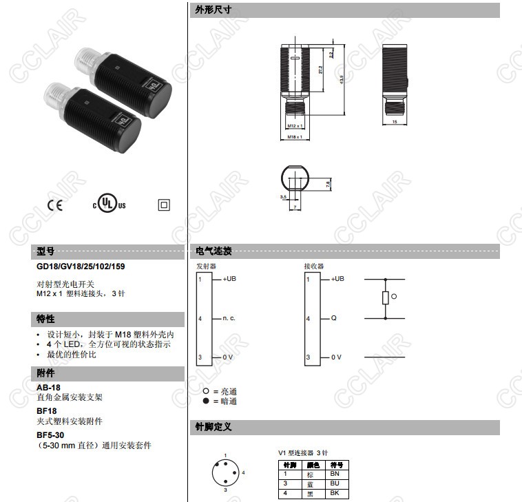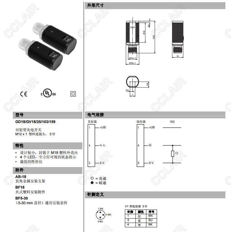 GD18/GV18/25/102/159,GD18/GV18/25/103/159,對(duì)射型傳感器