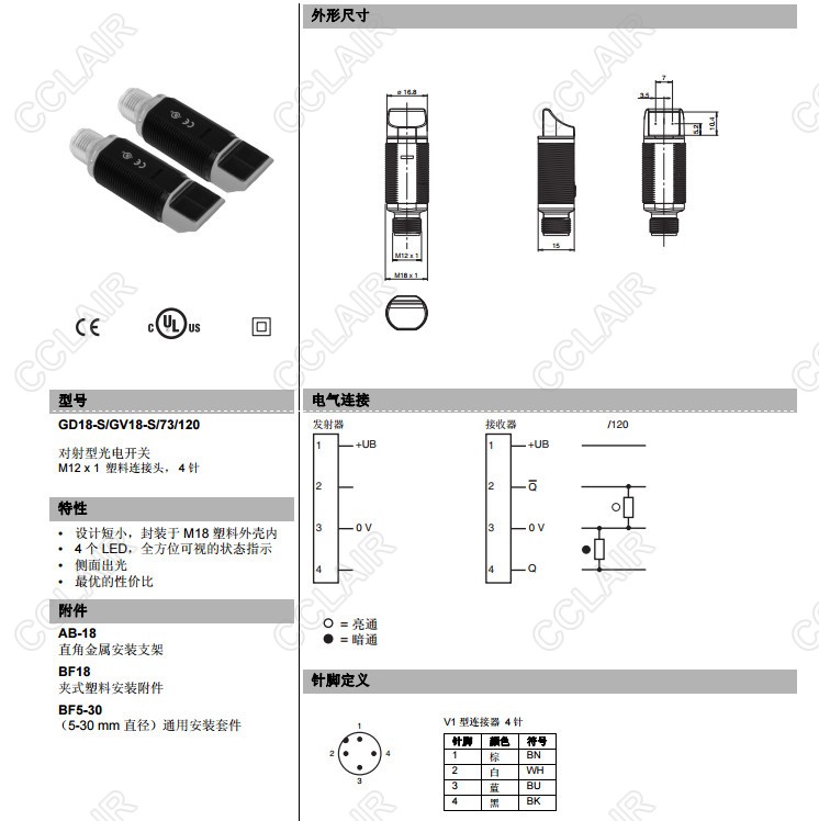 GD18-S/GV18-S/73/120,對(duì)射型傳感器