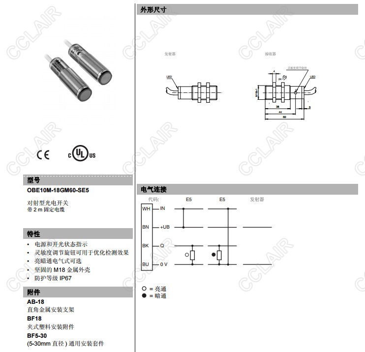 OBE10M-18GM60-SE5,對(duì)射型傳感器