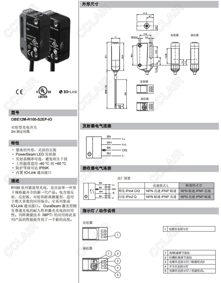 OBE12M-R100-S2EP-IO,對(duì)射型傳感器