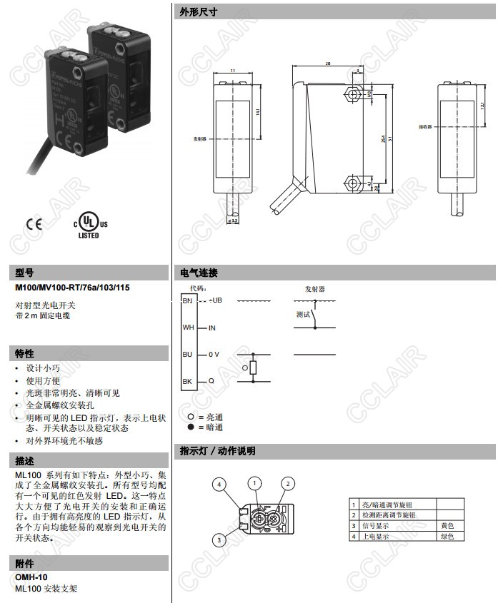 M100/MV100-RT/76a/103/115,對(duì)射型傳感器